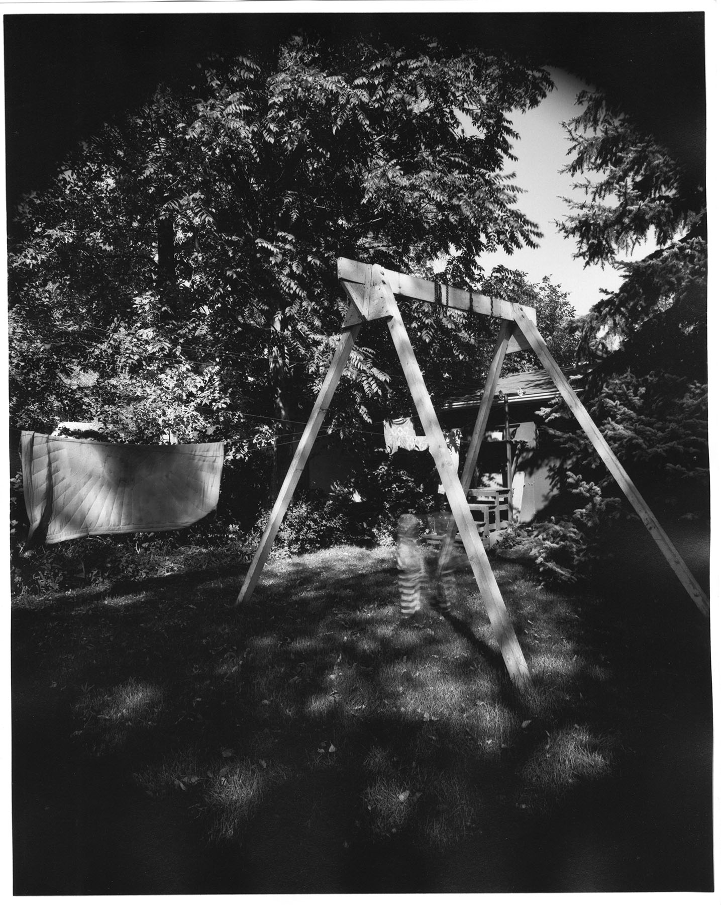 This series of domestic views centered around my home and family utilized a 50mm enlarger lens that barely covered the 4×5 film negative. Its inspiration was Emmet Gowan’s 1970s large format work.